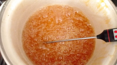 5. С момента закипания варим смесь без перемешивания, пока она не достигнет 140-145 градусов. Это занимает примерно 6-7 минут.