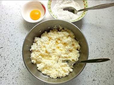 Тесто получается немного вязкое. Оставьте его на столе на 20 минут. Клейковина набухнет, тесто станет менее влажным и сырники будет легче формировать.