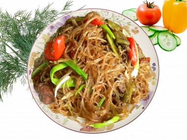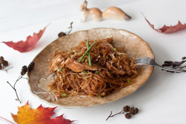 Пикантное, необычное блюдо! Фунчоза с курицей терияки - то ли салат, то ли второе блюдо. Интересно именно этим, то есть можно подавать в зависимости от ситуации и предпочтений. Мне очень понравилось. Большое спасибо за рецепт!