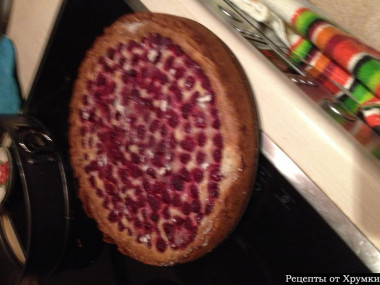 А вот мой с малиной, но без сливок,просто творог и малина.А тесто такое же - песочное. Люблю пироги с ягодами, а сейчас как раз такой период ягодный, все можно использовать и клубнику, и малину, и смородину, и крыжовник, все ,что есть на дач