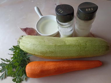 Как сделать лапшу из кабачков на сковороде? Очень просто. Для начала подготовьте необходимые ингредиенты по списку. Я использовала обычные кабачки с бледно-зеленой кожицей. Также подойдут молоденькие цуккини. Морковь выбирайте сочную и вкусную. Растительное масло можете брать подсолнечное или оливковое на выбор, подходящее для жарки.