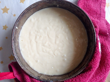 По консистенции тесто должно стать как густая сметана. Часть муки у меня осталась.