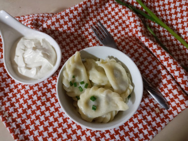 Вкусные с картошкой и грибами стоит подавать со сметаной! Очень сытные и полезные. Можно варить сразу или сделать заготовки и хранить их в морозилке. Такие полуфабрикаты часто выручают в те моменты, когда нужно быстро что-то приготовить.Спасибо за рецепт!