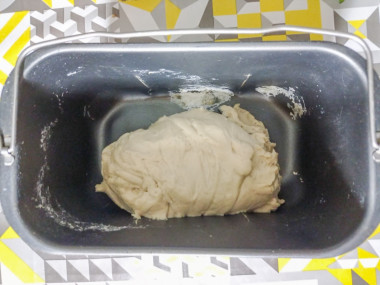 Тесто для вареников и пельменей я не очень люблю замешивать, поэтому всегда делаю это в хлебопечке. Муки у меня ушло 450 граммов.