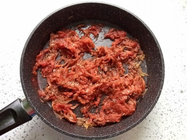 Обжарить на растительном масле с томатной пастой около 3 минут.