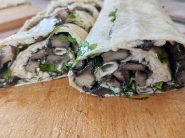 Сверните лаваш в рулет. Третий ролл готов.