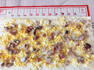 А вот по рецепту 2 у меня произошла замена. Крабовых палочек у меня в наличии не было, а была вкусная селедка. Поэтому я решила поэкспериментировать. Порезала сельдь на мелкие кусочки и положила сверху потертого на мелкой тёрке яйца. И эксперимент удался. Вкус, конечно, не такой, как с крабовыми палочками, но вкусный по-своему. Вцелом, все закуски получились вкусными. Главное, что времени на их приготовление затрачивается совсем немного.