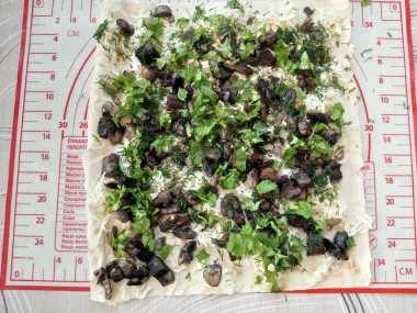 Распределите начинку по лавашу.