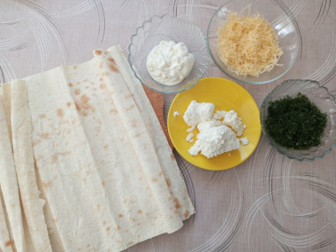 Сегодня собирались с друзьями, и я решила приготовить несколько закусок из лаваша с разными начинками. Сделала начинку по первому и третьему рецептам. Для первой начинки у меня был домашний творог и сыр. Сметану я использовала 20%. На мой взгляд, сметаны можно брать немного меньше, но это зависит ещё и от консистенции творога. У меня творог был не сухой, а довольно влажный. .