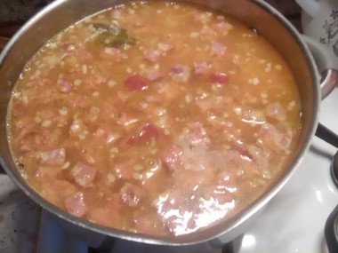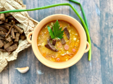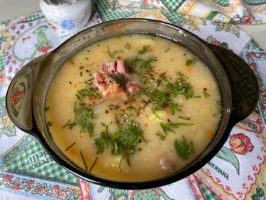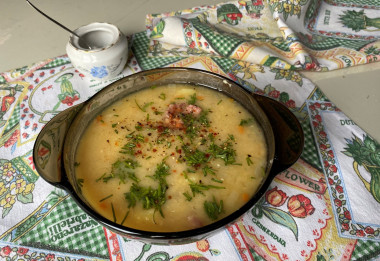 Отличный получился супик! Большое спасибо! Многое зависит от продуктов, первый раз под руку попался горох уже пересыпанный в банку, по этому производитель неизвестен. После замачивания на ночь в первые полчаса разварился в кашу. Всем равно суп получился обалденный. Второй раз был горох от Spar, даже после замачивания и варки, начал разваливаться только после часа. На второй раз не хватило рёбрышек, готовил большую порцию, пришлось добавить Краковскую, ьно та была очень жирная, выход- пожарить нарезанную, это прибавило аромат и разнообразие.спасибо за рецепт!