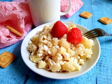 На завтрак нам с дочкой приготовила макароны с творогом. Этот рецепт видела давно, он меня заинтересовал простотой приготовления. Решила, что когда-нибудь обязательно сделаю.