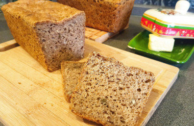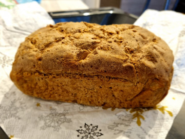 Поставьте форму в заранее разогретую до 190 градусов духовку, выпекайте хлеб примерно 40 минут. Ориентируйтесь на особенности своей техники. Я советую поставить на дно духовки противень с водой. Когда верх хлеба подрумянится, достаньте форму из духового шкафа. Переложите хлеб на тарелку. Накройте его чуть влажным полотенцем и оставьте на 15 минут. Хлеб готов. Приятного аппетита!