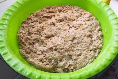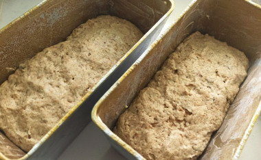 Переложите тесто в форму для хлеба, разровняйте поверхность. У меня силиконовая прямоугольная форма, поэтому я ее не смазывала. Если у вас другая жаропрочная форма (керамическая, металлическая) слегка смажьте ее рафинированным растительным маслом с высокой температурой дымления. При желании поверхность буханки можно посыпать тмином.