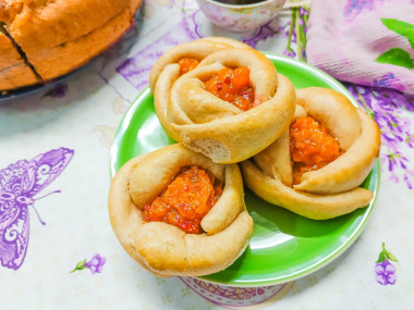 Очень вкусная сдобная выпечка. Тесто можно использовать для приготовления пирожков с любой сладкой, ягодной и фруктовой начинкой и для булочек.