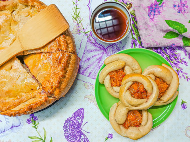 Когда тесто будет готово, приступайте к приготовлению пирожков. Используя стаканчик можно налепить круглые пирожки - булочки.