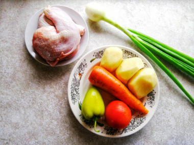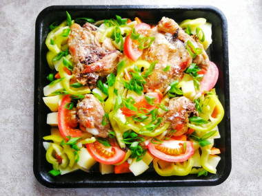 Приготовила на обед окорочка, взяв за основу рецепт куриная грудка с овощами в духовке.