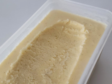 Всё ингредиенты брала по списку, только ванилин заменила на стручок натуральной ванили, поскольку стараюсь не использовать синтетические аналоги продуктов. Для этого рецепта мне хватило пол стручка ванили. Далее готовила по рецепту. Ваниль добавляла на третьем шаге, а затем смесь пришлось пропустить через сито, чтобы избавиться от крупинок ванили. Правда совсем мелкие частички ванили все же остались.