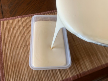 Проварите массу на среднем огне при постоянном помешивании до загустения. Не доводите ее до кипения, иначе могут свернуться желтки. В результате должен получиться густой однородный крем, очень вкусный, кстати. Полностью остудите его.