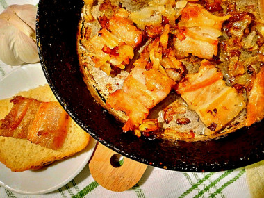 Сало я жарила только с яйцами, было у нас такое блюдо в девяностых) Можно сказать я это блюдо первым научилась готовить. А вот просто так в качестве закуски не пробовала и честно говоря даже удивилась, увидев этот рецепт на сайте. Но решила попробовать на вкус) Как раз отваривала сало с прослойками мяса и отрезала несколько ломтиков для жарки. Сало очень быстро приобрело румяную корочку, я перевернула кусочки и сразу засыпала лук. Кстати лука можно брать даже больше, он хорошо сочетается с салом. Специи особо не использовала, только свежемолотый перец. В общей сложности готовилось блюдо 20 минут. За это время мясо хорошо поджарилось, а из сала вытопилось довольно много жира. Сначала я не знала как это есть) А потом пришел муж и сделал бутерброд с хлебом. Так что мы определились, что жареное сало отлично сочетается с хлебом, и белым и черным) Кстати с хлебом получается не очень жирно. Жареное сало с мясной прослойкой очень вкусное, ароматное. Автор правильно говорит, его надо есть горячим, а то потом появляется белесый налет и вкус теряется. Блюдом я осталась довольна, буду использовать)
