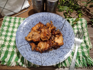 Приготовила жареное сало на сковороде по этому рецепту. Честно скажу, что готовила для мужа, так как я такое жирное не ем) Взяла свиную грудинку промыла, обсушила и нарезала ломтиками. Мне они показались длинными и я их разрезала пополам. Обжарила на сковороде грудинку до румяности с обеих сторон на сильном огне. Добавила измельчённый лук и жарила всё вместе несколько минут. В конце добавила соль, перец и ещё немного молотой паприки. Хотела, чтоб наверняка хорошо прожарилась грудинка и не была жесткой, поэтому накрыла крышкой и потомила грудинку на медленном огне минут 5. Подавала с отварными картофелем на обед. Муж сказал, что очень вкусно. Грудинка свиная вышла не жёсткой, румяной, очень ароматной и сочной. Замечательный рецепт, а главное быстро и просто готовить. Благодарю автора!