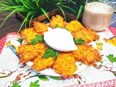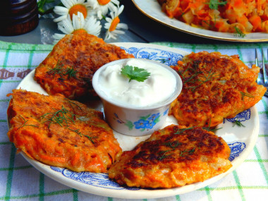Овощные оладьи с луком и морковью это что-то невообразим вкусное! Такие оладушки обязательно придутся по вкусу любителям овощей, в частности морковки и репчатого лука. Оказывается, эти овощи можно употреблять в пищу даже в качестве выпечки. Особенно вкусны такие оладьи со сметаной и свежей зеленью. Я подала их к столу, не предупредив о содержимом домочадцев, И отзывы были самые хорошие, даже от детей, которых луком и морковью в обычном виде не накормишь.