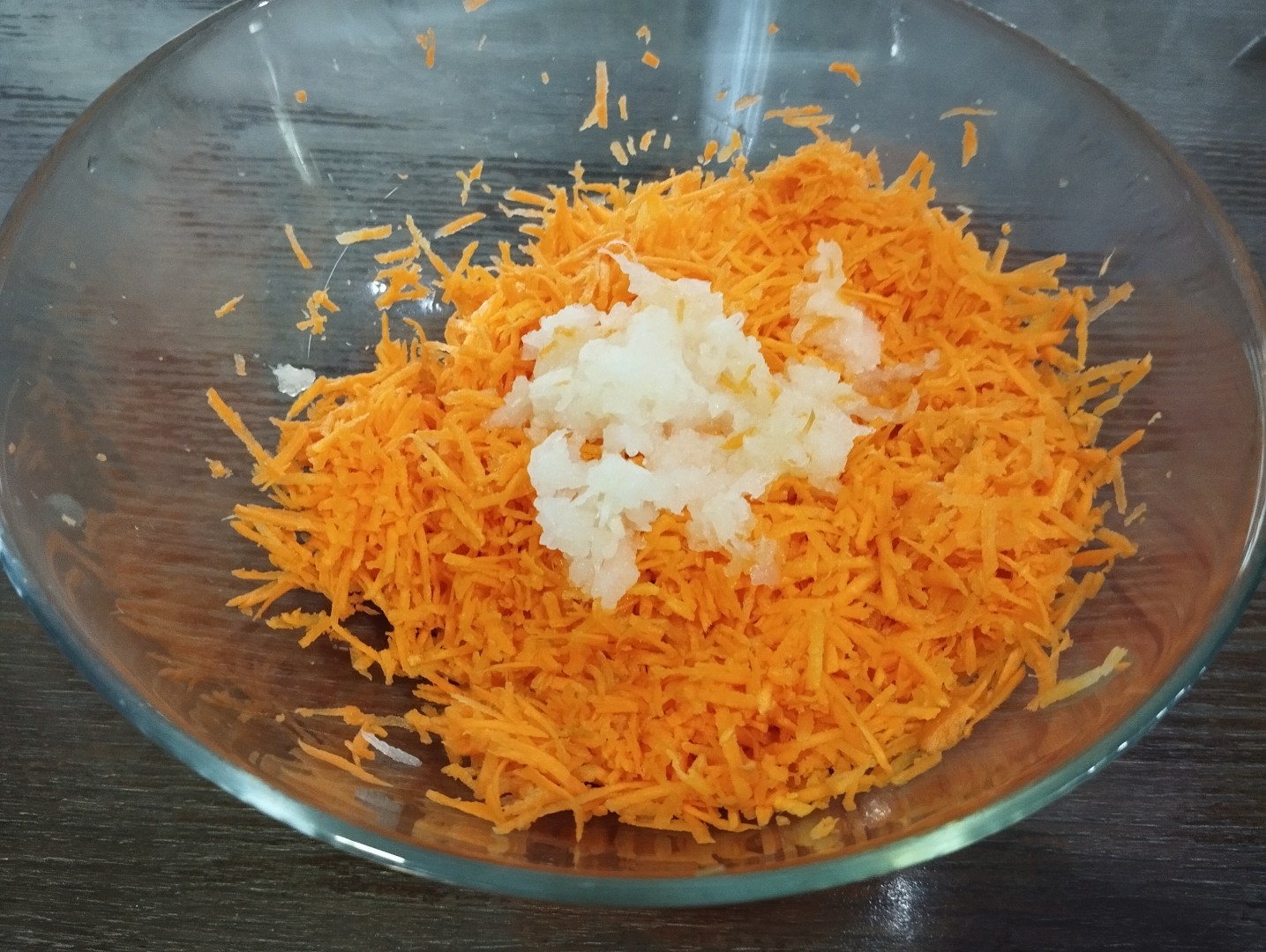 Луковицу очистите и также натрите на терке. Если вы любитель лука, то можете нарезать его кубиком, тогда он будет чувствоваться сильнее.