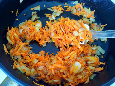 На сковороде разогрейте оливковое масло. Обжарьте на масле овощи до мягкости морковки и прозрачности лука. При желании оливковое масло можно заменить подсолнечным. Как выбрать сковороду и масло для жарки вы узнаете из статей на эти темы, ссылки на них ищите в конце этого рецепта.