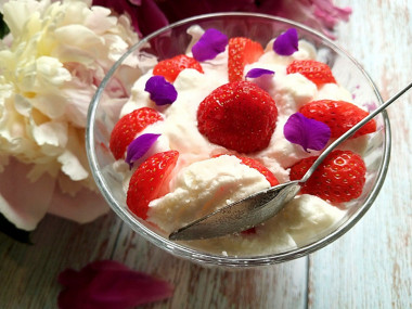 Мне всегда хочется пристроить первые ягодки с грядки в какой-нибудь желейный десерт, это уже традиция) Из всего многообразия рецептов выбрала суфле из сливок и желатина с земляникой. Готовить этот десерт очень просто и получается достаточно быстро. Особенно если заранее замочить желатин) Ягоды попались крупные, я их нарезала на кусочки. По фото шагам все понятно, сложностей с приготовлением не возникло. Из указанного количества продуктов у меня вышло две большие креманки. Суфле получилось воздушное, все пронизано пузырьками воздуха. Желатина в составе как раз на то, чтобы десерт не превратился в плотное желе, а остался кремообразным. В сочетании со свежими душистыми ягодами просто шикарно! Спасибо за рецепт!