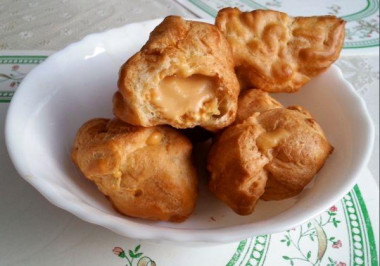 Недавно познакомилась с рецептом заварного теста, и теперь заварные пирожные частый гость в нашем доме. Единственное, не стараюсь использовать маргарин, потому что есть маленькая дочка-сластена, меняю его на сливочное масло. В этот раз сделала со сгущенкой, мои оценили, еле успела фото сделать