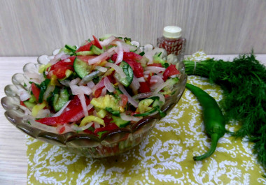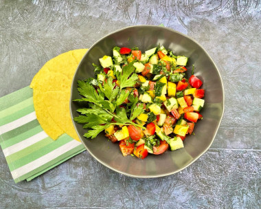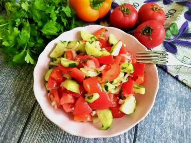 Салат летний огурцы помидоры - это самый любимый салат в моей семье. Готовлю его круглый год, но из сезонных овощей он получается особенно вкусный и сочный!