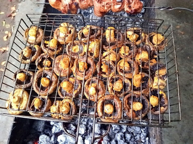 Классно, спасибо. Можно приготовить шашлыки из шампиньонов с разными овощами на мангале.