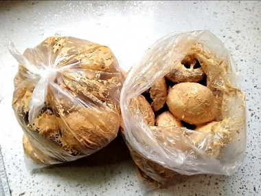 Вымытые и очищенные от пленок шампиньоны выложите на кухонное полотенце, чтобы оно впитало лишнюю жидкость. Оставьте на 15-20 минут, чтобы вся влага впиталась в ткань. Важно хорошо обсушить грибы, иначе напитавшись влагой, они станут водянистыми.