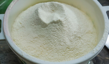 Как замесить дрожжевое тесто на сырых дрожжах на молоке? Подготовьте необходимые ингредиенты. Дрожжи обычно продаются брикетами по 100 грамм. Отрежьте необходимое количество дрожжей и поломайте их на мелкие кусочки. Муку высшего или первого сорта просейте пару раз через сито, чтобы насытить её кислородом. Благодаря этому готовые изделия из такого теста будут очень воздушные. Молоко необходимо нагреть до теплого состояния.
