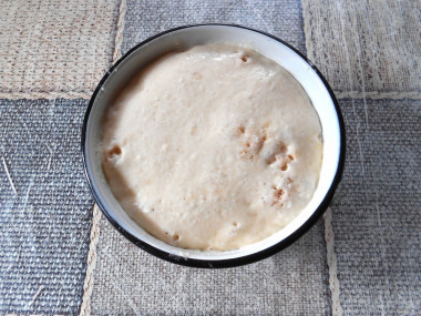 Все перемешайте и оставьте постоять минут на 10-15. В опаре дрожжи хорошо растворятся, и начнется процесс брожения. Вы это увидите по появившимся пузырькам.