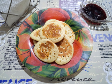 Затем оладушки классические на сковороде деревянной лопаткой переверните и жарьте с другой стороны также до румяности. После переворачивания оладьи уже быстро жарятся, поэтому главное их не передержать, чтобы не пригорели. Снимите пышные оладушки со сковороды. Если масла при жарении использовалось много, то оладьи можно выложить на бумажное полотенце, чтобы лишний жир стек. Подавайте оладьи к чаю, со сметаной или джемом по вкусу. Приятного чаепития!