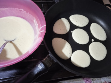 Как пожарить оладьи классические на кефире? Подготовьте все необходимые ингредиенты. Кефир и яйца нужно вынуть из холодильника заранее, они должны быть комнатной температуры. Это способствует хорошему подъему теста и получению пышных оладушек. Для особого аромата, вызывающего аппетит, в тесто на оладьи можно добавить щепотку ванилина, большее количество придаст готовому блюду горечь.