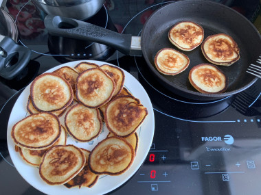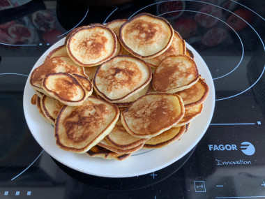 У меня скисло молоко и превратилось в кефир, я решила его не выливать, а поискать простой рецепт с использованием кефира на любимом сайте и нашла. Сделала оладьи классические на кефире по этому рецепту. Домашнее яйцо взболтала с солью и сахаром. Добавила кефир, муку и соду, гашенную уксусом. Получилось тесто средней густоты. Также добавила в тесто постное масло. Жарила оладьи на сухой сковороде, выкладывая тесто столовой ложкой. Готовились оладьи очень быстро. Жарила с обеих сторон до румяности. Подавала оладьи тёплыми с вареньем. Очень получились вкусными и аппетитными оладушки. Они не жирные, мягкие и нежные. Ребенок кушал с большим удовольствием оладьи с вареньем. А взрослые ели со сметаной на завтрак. Отличный рецепт. Всем понравилось. Спасибо автору за спасение моего кефира)