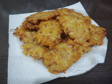Драники готовила часто, но с колбасой и сыром впервые. Добавила еще немного кабачка для нежности и зеленого лука с укропчиком. Мммм, объедение!!! Спасибо за рецепт!