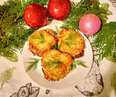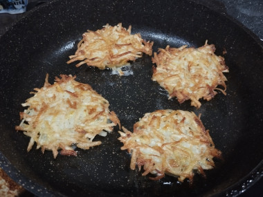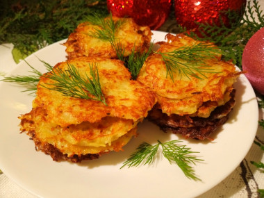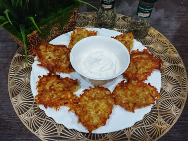 Картофель натерла на крупной тёрке, отжала жидкость. Добавила соль,перец, яйца,перемешала. Выкладывала столовой ложкой на сковороду и обжаривала с двух сторон. Очень просто,быстро и вкусно! Подавала со сметаной...мм ....объедение! Спасибо Snezhana за рецепт.