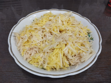 Но есть маленькая хитрость, я натираю картофель на разных полотнах терки, часть трется крупно, это придает структуру, а другая часть измельчается на терке с круглыми дырочками, она буквально "дерёт" картофельные клубни, в мягкую кашу.