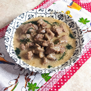 Кислотность сметаны действует на мышечные волокна говядины как натуральный маринад, дополнительно разрыхляя их и делая мясо более нежным.