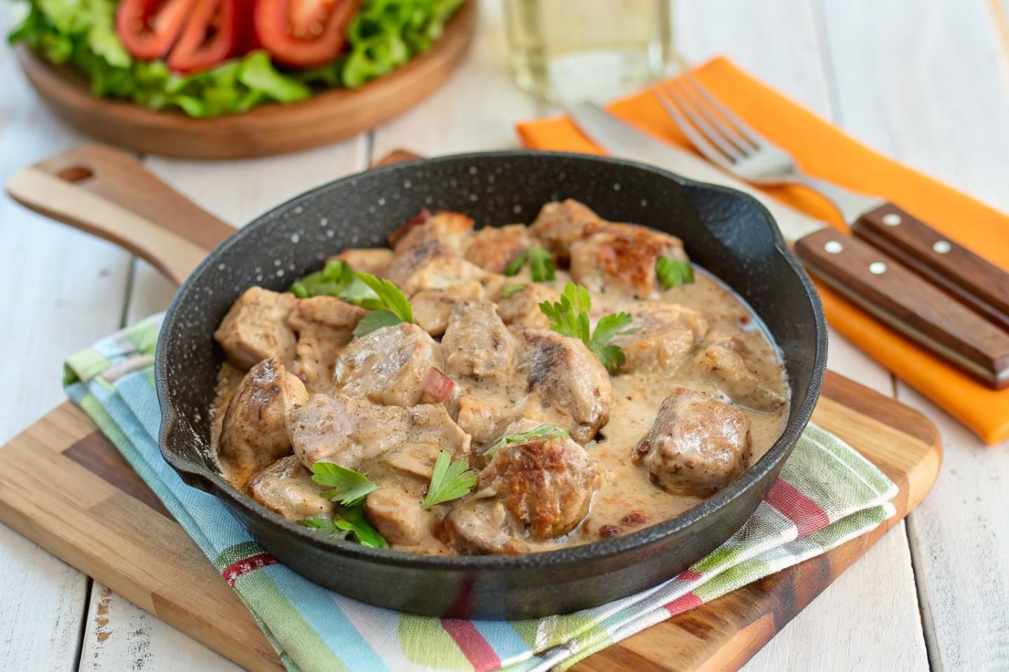 Более легкий вариант: Использовать сметану 10-15% жирности и не обжаривать мясо, а сразу тушить с овощами.
