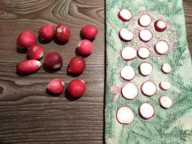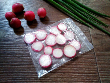 Никогда в жизни не замораживала редиску, даже не слышала об этом. Увидела случайно рецепт "как заморозить редиску"и очень захотелось попробовать. Заморозила по этому рецепту 10 редисок на пробу для салата или окрошки. Редиску брала тепличную, вкусную, домашнюю. Выбрала небольшие, молодые и без пятен редиски для заморозки. Редис нарезала тонкими кружочками, просушила и разложила на тарелке. Убрала в морозилку на 15 минут по рекомендации автора. Тем временем подготовила небольшие пакетики с замочками для заморозки продуктов. Затем кружки редиса разложила по пакетикам и убрала в морозилку. Очень простой и быстрый способ заморозки всеми любимого овоща и абсолютно без заморочек. Теперь у меня есть заготовка полезного, хрустящего и витаминного продукта. Спасибо автору за идею!