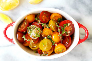 Накройте кастрюлю крышкой и оставьте помидоры мариноваться на 3-5 часов при комнатной температуре.