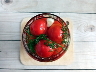 Захотелось мне приготовить помидоры малосольные. На сайте нашла рецепт малосольных помидоров с чесноком в банке. Мне сразу понравилась простота приготовления рассола, его легко запомнить. Хватило его на банку объем 1,7 л.