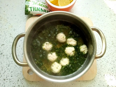 Иногда хочется покушать лёгкого бульончика вместо сытного супа. Нашла на сайте интересный рецепт бульона с фрикадельками. Это не просто "отвар" мяса, здесь есть приятный бонус в виде лимона и шпината. Фрикадельки я сделала из грудки индейки. Только вместо пармезана я взяла обычный российский сыр. Шпинат у меня был порционный замороженный, взяла три штучки. Тимьян взяла сушеный. Куриный бульон у меня замороженный. Точно не знаю сколько его было, добавила фильтрованной воды до нужного объема. При подаче положила в миску кружочек лимона. Вкус бульона получился необычным. Явно чувствуется курица, сыр и лимон. Тимьян больше придаёт аромат, чем вкус. Шпинат хорошо дополняет бульон и фрикадельки. Суп получился и лёгким и сытным одновременно. Для разнообразия очень достойное блюдо.