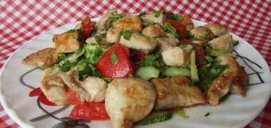 Легкий, аппетитный, пикантный, без майонеза! Салат Эдельвейс с курицей получается очень вкусным. Готовится он легко и быстро, основное время занимает приготовление филе. Сочетание овощей, курицы и острой заправки делает этот салат запоминающимся!