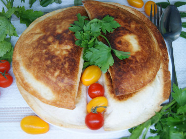 У моих лепешек был диаметр в среднем от 22 до 27 см, фарша вместе с овощами - 540 грамм. Хватило как раз на 4 лепешки (столько было в упаковке). И я была щедра на начинку. Стесняюсь