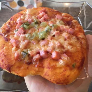 Для меня этот рецепт оказался настолько удачным и, я бы даже сказала, полезным, что просто ой! Нежное, мягкое, податливое тесто, которое хорошо пропекается, поднимается в меру - пиццы из него получаются не слишком тонкие и не толстые - их удобно держать в руках. Начинки можно менять под любые вкусы. Я готовила строго по рецепту, но обязательно буду пробовать и с другими начинками. Сюда даже сладкая, с фруктами пойдет на ура. Кстати, соленый огурчик очень хорошо вписывается! Настолько хорошо, что я бы и классическую пиццу попробовала с ним приготовить! Спасибо за рецепт "Школьная пицца"!