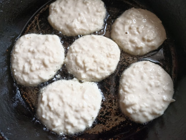 Ложкой выложила тесто на сковороду и обжарила оладьи с двух сторон до готовности.